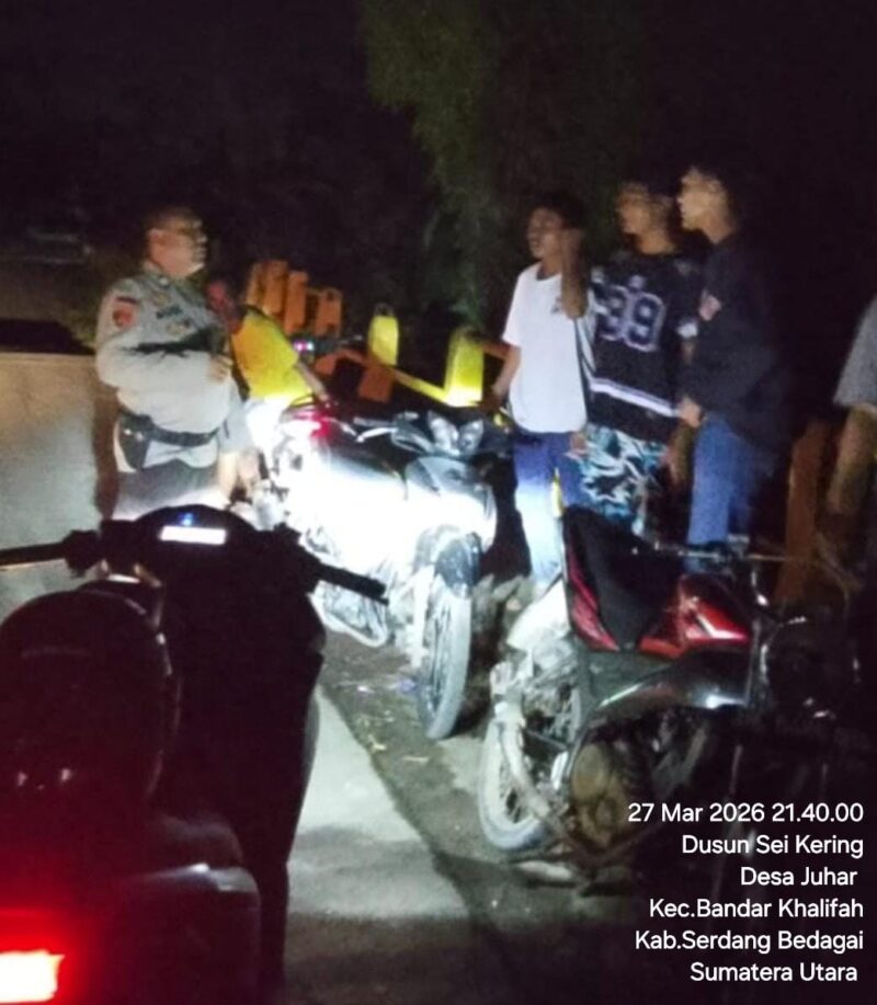 Guna mengantisipasi tindak pidana dan aksi premanisme pada malam hari serta menciptakan situasi keamanan dan ketertiban masyarakat (Kamtibmas) yang kondusif, Polsek Bandar Khalipah Polres Tebing Tinggi Intensifkan Patroli Blue Light dengan menyusuri sejumlah lokasi di wilayah hukumnya, Jumat (27/3/2026).